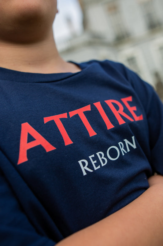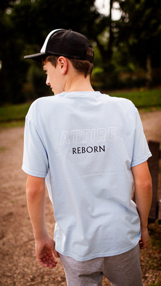 Children's Blue Attire Reborn Slogan T-Shirt with back detail